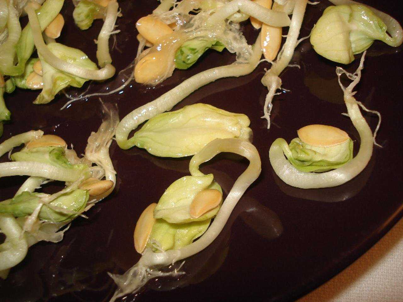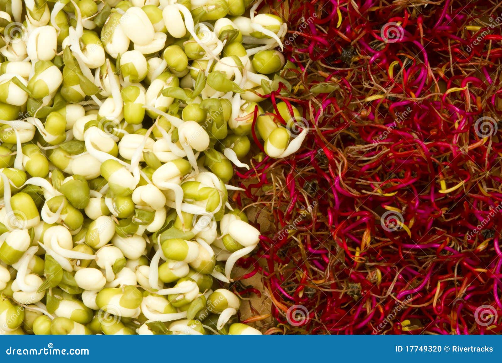 Хрустящие-нежные ростки различных бобов и семян. Густые ростки бобов мунг, часто используемые для жарки, пожалуй, самые известные, но ростки чечевицы, редиски или соевых бобов имеют восхитительный землистый вкус и хрустящую текстуру.