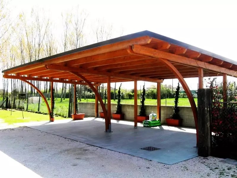 Среди навесов часто встречается арочный тип. Его особенности позволяют предотвратить скопление большого количества жидкости на поверхности крыши. В зависимости от условий эксплуатации конструкции могут модифицироваться и дополняться специальными элементами.