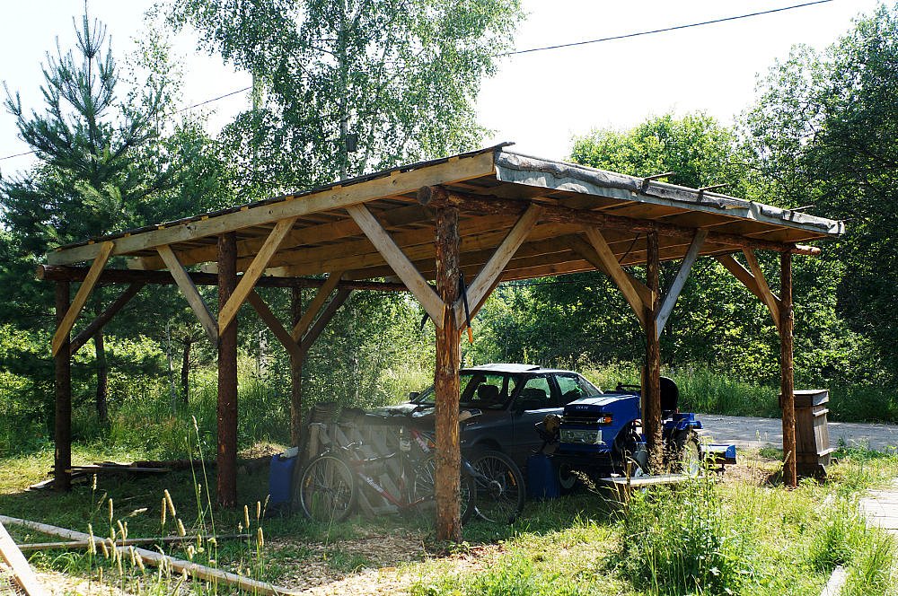 Чаще всего применяются односкатные крыши. Это простой и доступный вариант организации стоянки для транспортного средства.