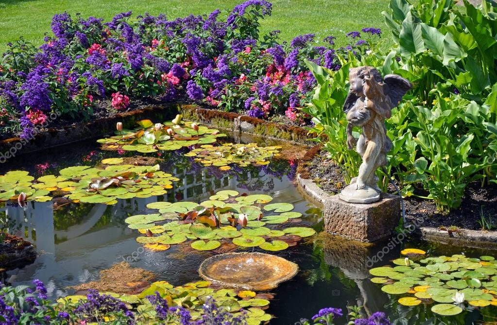Посмотрите на фото, как оформить пруд на даче в английском и кельтском стиле: