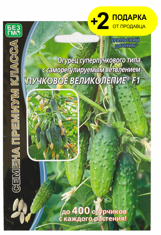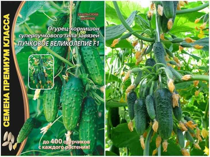 Сорт Пучковое великолепие f1 — один из коллекционных уникальных гибридов огурца Великолепная пятёрка, обладающий невероятной урожайностью, которая достигается благодаря пучковости. В узлах растения формируются настоящие букеты зеленцов, за счёт чего оно даёт урожай, как 10 растений обычного гибрида.