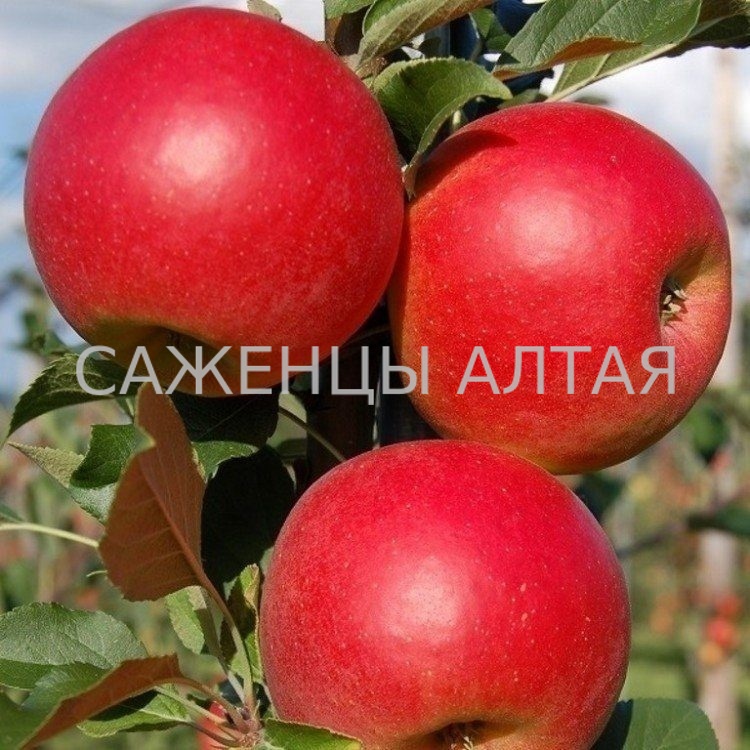 Среднерослый сорт формирует плоды массой в 170 г. Яблочки имеют красную окраску с узором из размытых крапинок и полос. Вкус оценивается на 4,4 балла. Урожайность немного превосходит отметку в 120 ц/га.