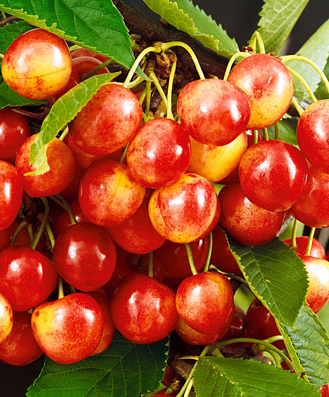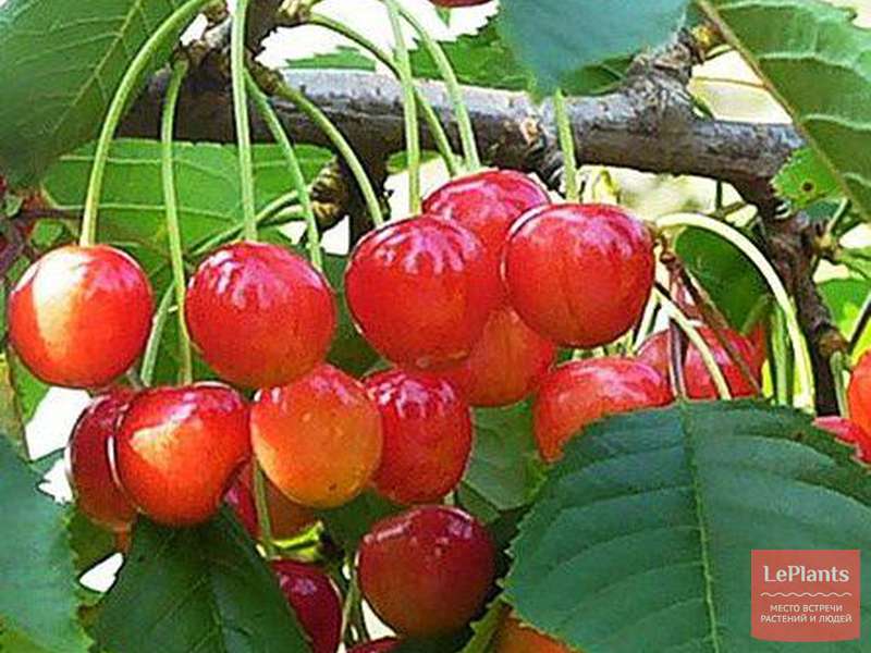 Плоды средней массой 5,0 г, высота 21 мм, ширина 23 мм, толщина 19 мм; форма от тупосердцевидной до округло-овальной, с боков сплюснуты слабо, воронка мелкая и узкая; верхушка плода округлая, остаток пестика в виде точки, лежит в очень мелкой и узкой ямке. Основная окраска плода кремово-желтая, покровная – огненно-красный румянец по всей поверхности, привлекательность плодов высокая, особенно у хорошо освещенных солнцем. Мякоть кремовая, нежная или средней плотности, ближе к гиням, чем бигарро, очень сочная, сок бесцветный. Вкус сладкий с незначительной кислотой, простой; у крупных, хорошо развитых плодов десертный с дегустационной оценкой 4,5 балла; мелкие, плохо освещенные плоды в глубине кроны по вкусу гораздо хуже – малосахаристые, пресные.