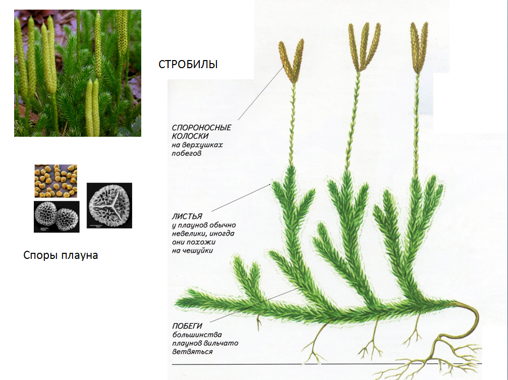 Нередко мы встречаем в лесах, на болотах и влажных лугах приятные мохнатые веточки зеленого цвета. Это вегетативные активно фотосинтезирующие побеги хвоща полевого или лесного. Эти же виды образуют еще и спороносные побеги с колоском на верхушке, где формируются споры. В них фотосинтез идет по минимуму, поэтому зеленых частей мало. Главная задача для этих побегов – обеспечить образование и созревание спор, т.