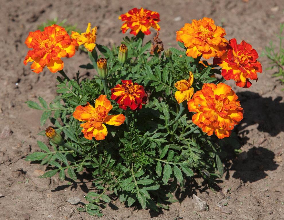 - отклоненные (Tagetes patula) Кармен, Креста, Алюмиа, Гармония, Герой, Тигровые глаза, Мандарин, Расти Ред, Сафари;