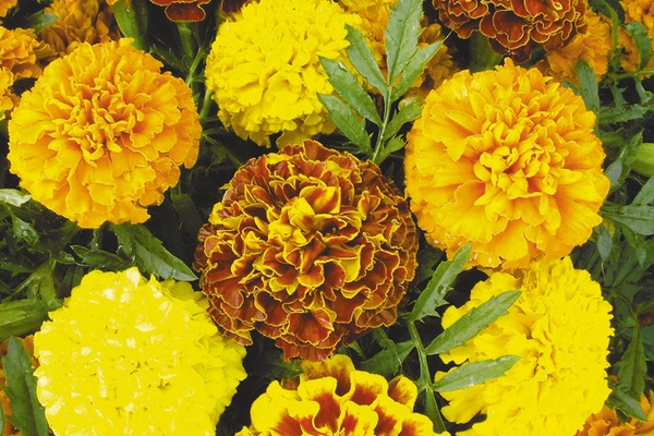 - африканские прямостоячие (Tagetes erecta)Тайшан, Марвел, Прима голд и другие;