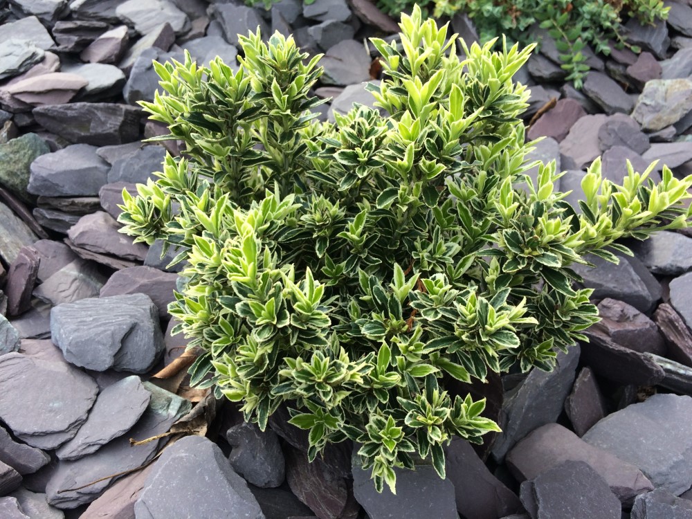 Это совсем компактный китайский бересклет в виде пестролистного стелящегося кустарника до 50 см.