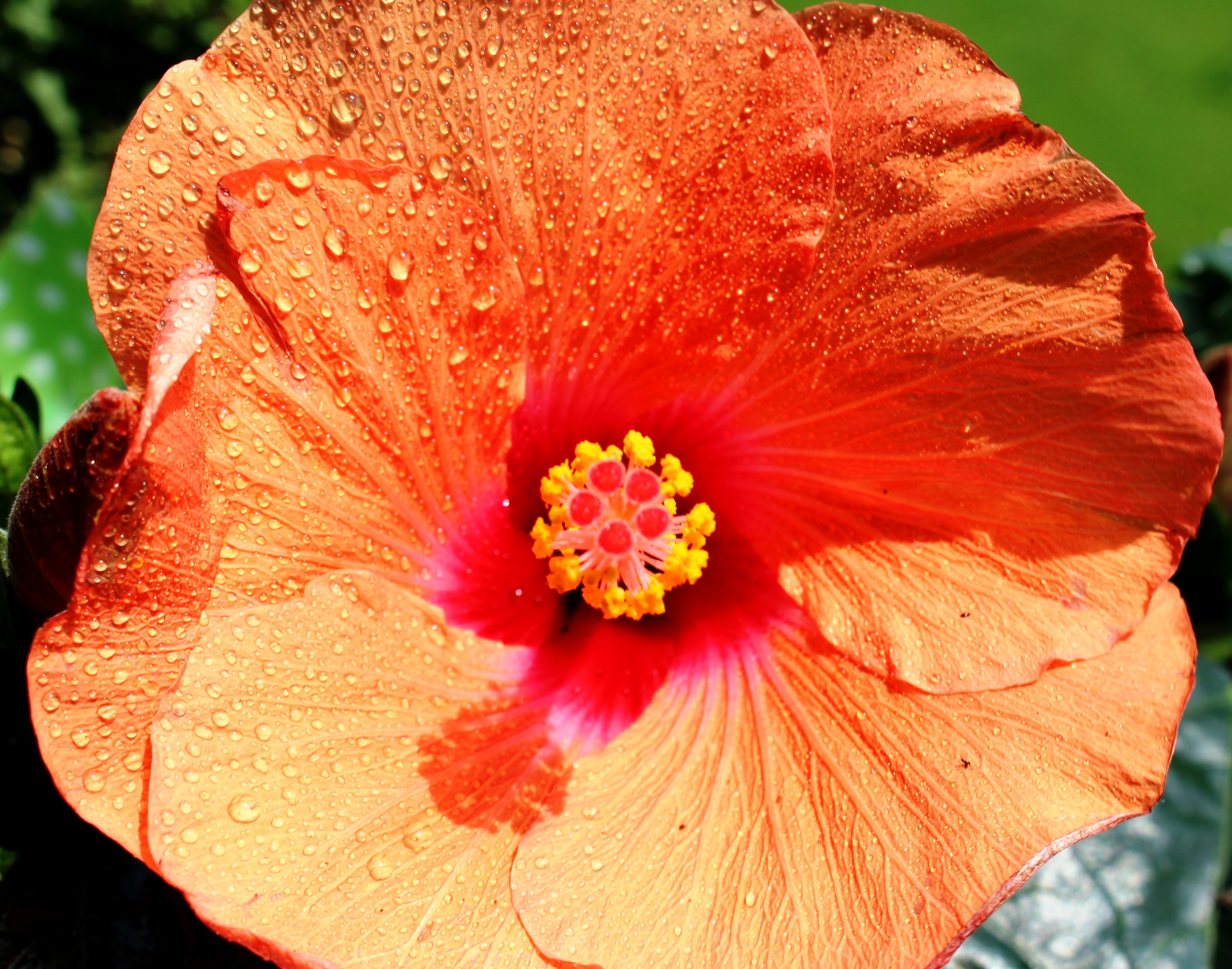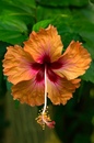 - Hibiscus rosa-sinensis «Cajun Cocktail» имеет прекрасные пестрые соцветия, шириной 6 дюймов, и нет двух абсолютно одинаковых соцветий.