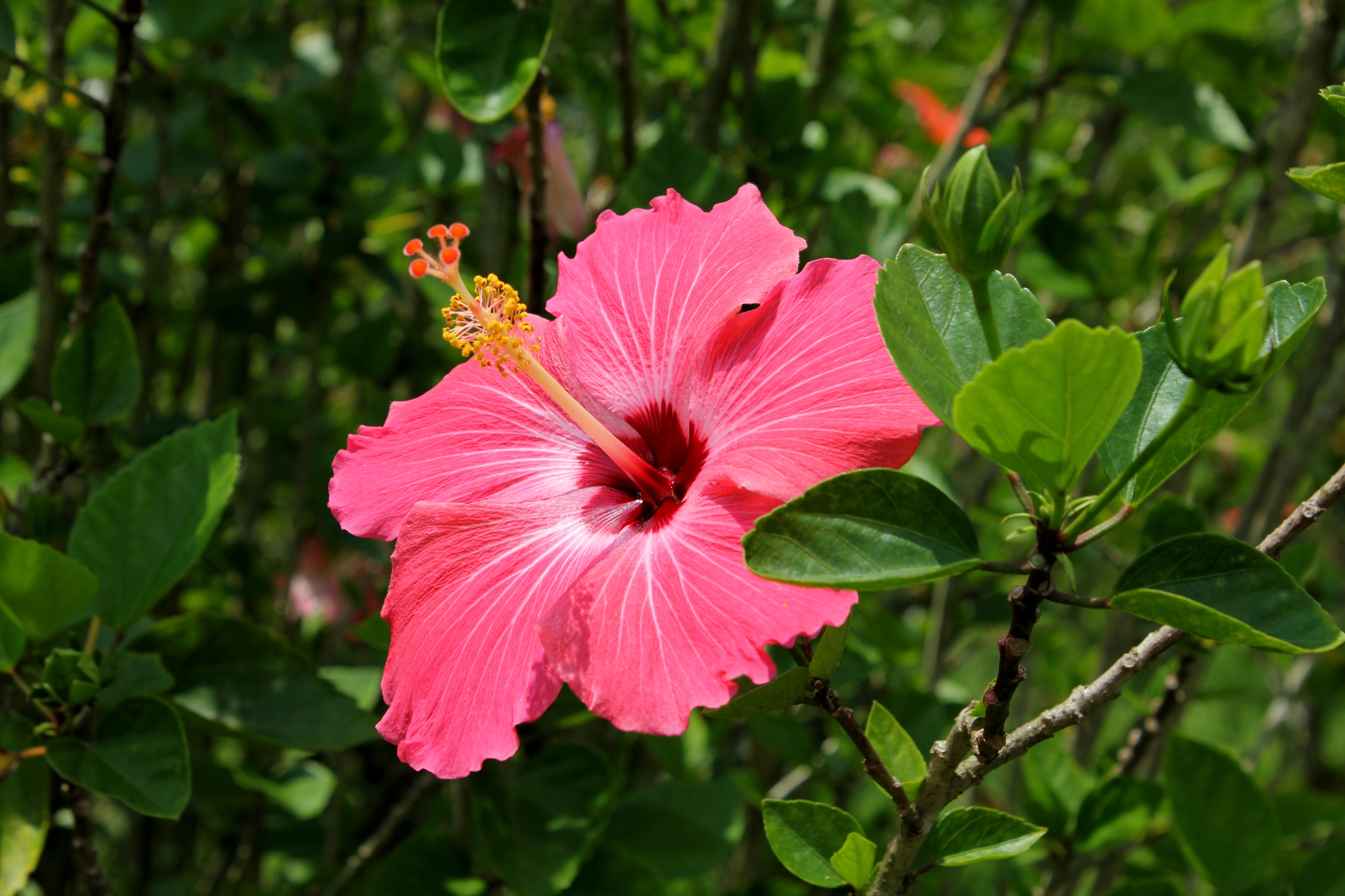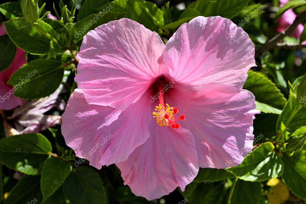 - Hibiscus rosa-sinensis ‘ Bonjour’ постоянно цветет красными и розовыми цветами. Он вырастает от 4 до 6 футов в высоту.