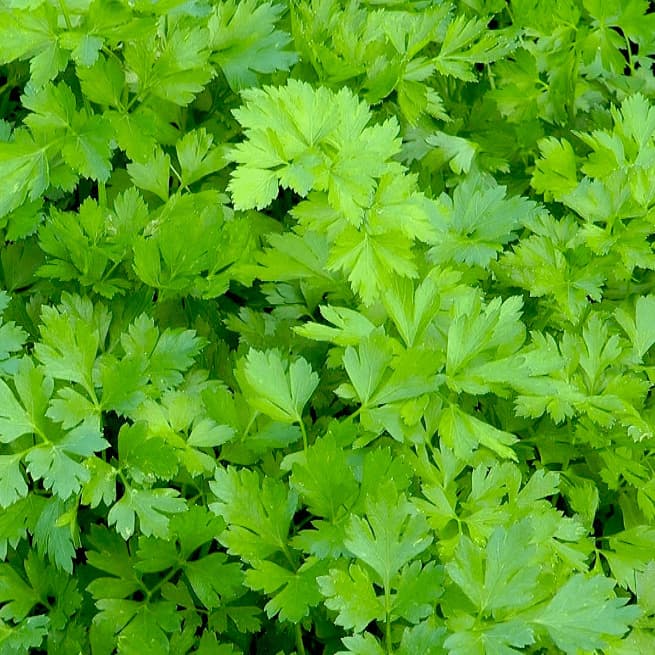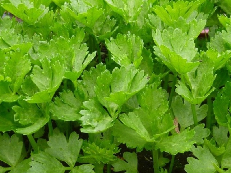 Крупный план плантации сельдерея в огороде
