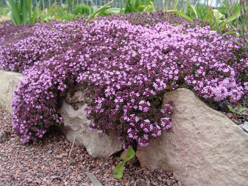 Для сада хороши следующие ковровые сорта тимьяна ползучего (T. Serpyllum) и гибриды этих замечательных растений: