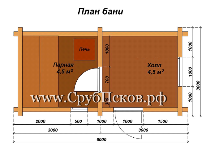 В этом помещении устанавливается газовая, дровяная или электрическая печь. Парилка должна быть компактной. Это позволит быстро прогревать помещение и использовать печь с меньшей мощностью, что поможет сократить бюджет на обустройство бани. Для установки оборудования и его обслуживания потребуется минимум 1 кв.м.