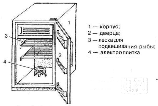 Схема коптильной камеры из холодильника.