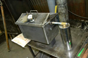 - В верхней части аппарата устанавливать труба, на которую с помощью крюков будут подвешиваться продукты.