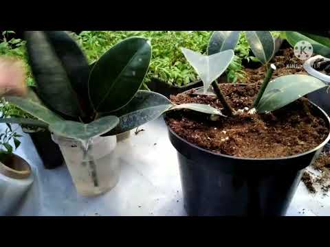 Есть еще один хороший способ размножения каучуковых деревьев, который немного сложнее, чем черенкование, но довольно крут. Называется «воздушная отводка». Этот процесс включает в себя надрез посередине стебля растения и удаление внешнего слоя коры, обертывание раны для стимулирования роста корней, а затем отделение верхней части растения для самостоятельной посадки в горшке.![]()