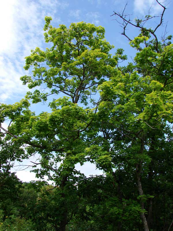 В листьях не каждый сразу опознает кленовые, хотя они имеют по 3 (5) неглубоких заостренных лопастей.