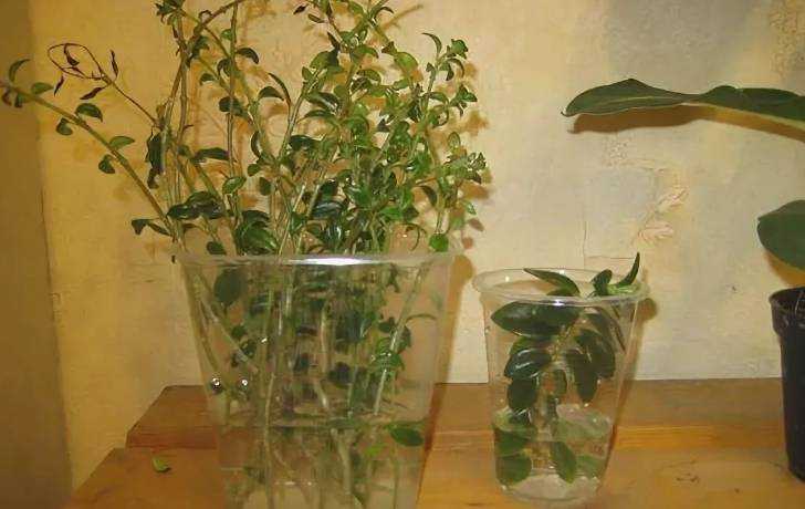 Для укоренения достаточно удалить нижние пары, обработать черенки ускорителем роста или просто поместить в воду или смесь песка, перлита и торфа в равных частях. Для укоренения важно создать тепличные условия с повышенной влажностью воздуха и температурой не менее 25 градусов. Частое опрыскивание и проветривание «шапочек» благотворно сказывается на процессе укоренения.