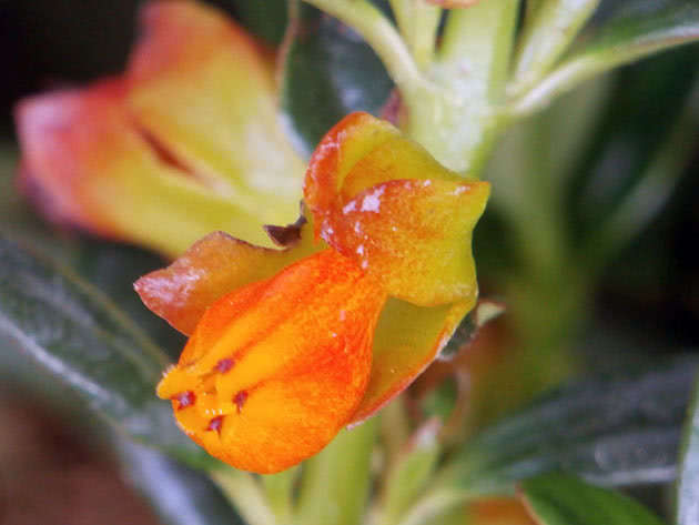 Цветки трубчатые с шаровидным вздутием, с венчиком, который имеет небольшой отгиб. Цвет бутонов — яркий жёлто-оранжевый, классический для рода нематантусов.