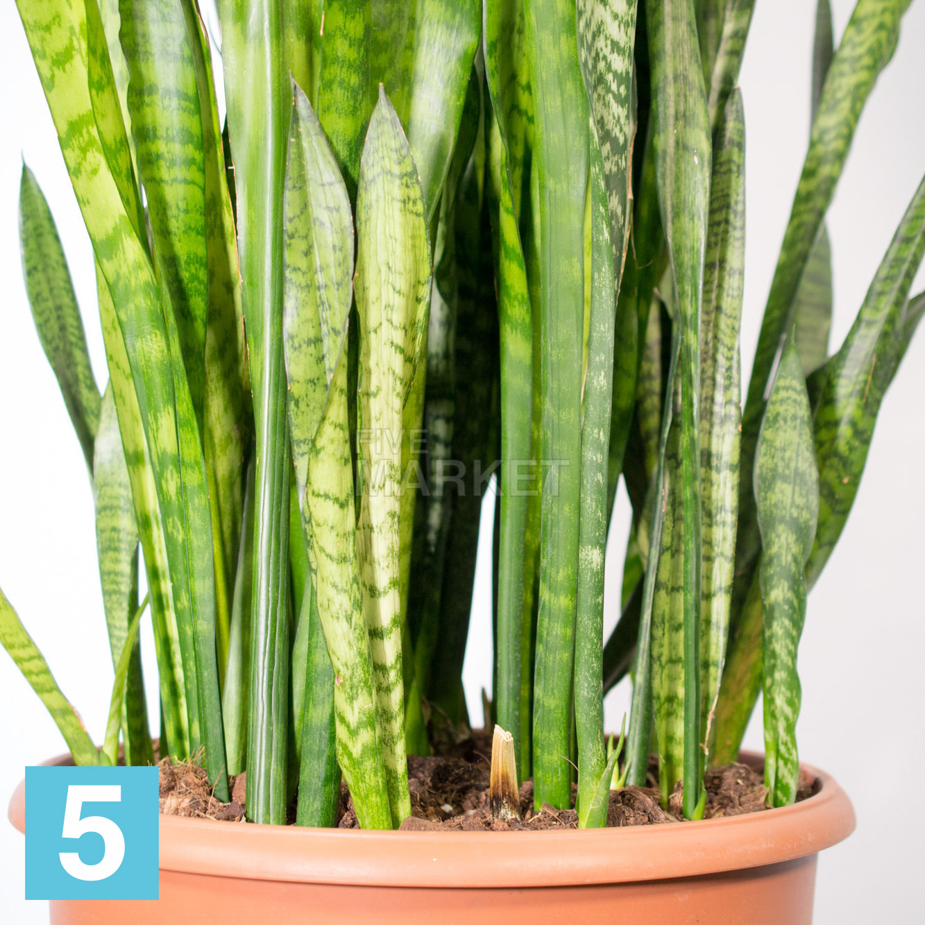 Это растение с листьями более 2 футов в длину, плоскими, волнистыми, сильно пестрыми, с замечательной устойчивостью к солнцу и холоду для сансевиерии. Возможно, слишком большое, но для самых больших горшков, это растение становится все более популярным среди ландшафтных дизайнеров в засушливых зонах, где нет морозов, и даже в районах, где почти нет морозов.