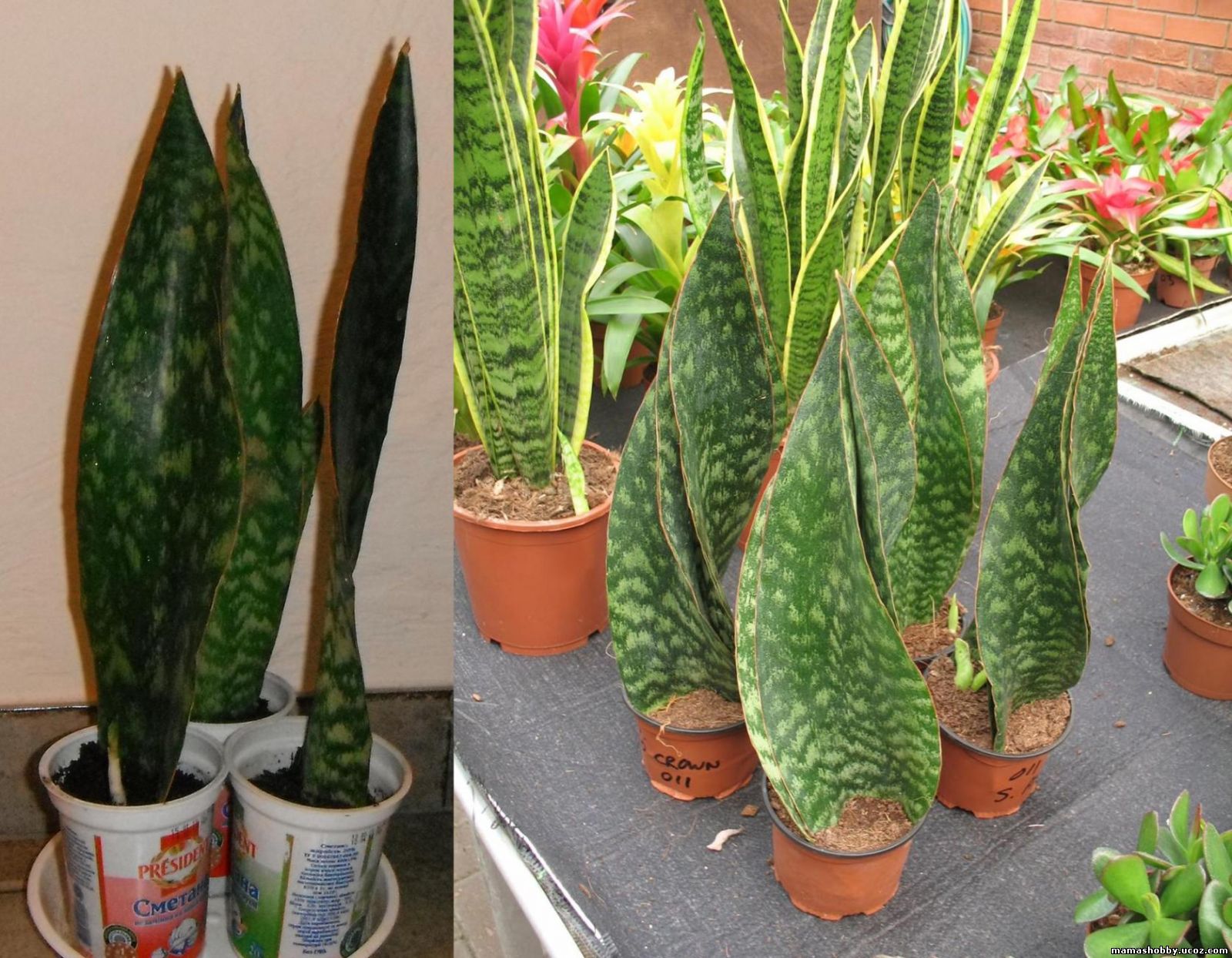 Максимальное количество тепла, которое можно обеспечить, будет поддерживать их постоянный рост. Эти растения, как правило, требуют очень небольшого количества удобрений, и лучше всего использовать меньше, чем рекомендуется для большинства комнатных растений. Удобрения на водной основе следует использовать в половинной концентрации или меньше.Сухие гранулированные удобрения длительного действия необходимо использовать осторожно, вносить только после недавно увлажненной почвы и использовать очень экономно. Свет должен быть непрямым, если только у человека нет особо нуждающихся в солнце видов. Прямой солнечный свет иногда отбеливает эти растения, особенно более пестрые, с плоскими листьями, делая их менее декоративными. Слишком мало света заставит растения растянуться (растянуться) и стать более яркими и светло-зелеными. Многие виды переносят слабое освещение, но со временем могут стать слабыми и нездоровыми.Оба вида — Sansevieria cylindricas — растение слева, поднятое при ярком свете, и растение справа, при меньшем освещении