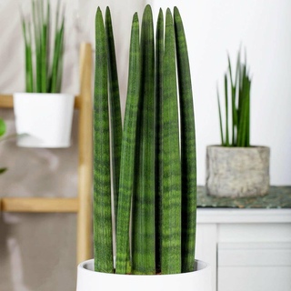 Сансевиерия цилиндрическая имеет темно-зеленые листья в виде цилиндрических копий.Его листья полосатые и могут вырасти до 7 футов в высоту и 1,2 дюйма в ширину. У него белые цветки с розовыми бутонами, которые могут вырасти до 3 футов в высоту.