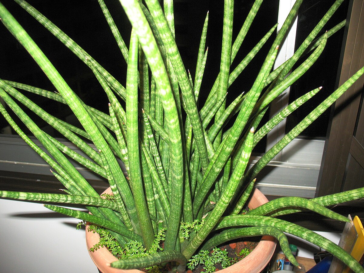 Последний, но не менее важный — Sansevieria trifasciata .Это, безусловно, самый распространенный и популярный из всех сансевиерий, и растение, получившее название Свекровиный язык, из-за его длинных, прямолинейных, плоских листьев в форме языка, которые заканчиваются заостренным концом (как у свекрови языка ?). Причина, по которой этот вид так популярен, заключается в том, что он очень вынослив и существует множество доступных декоративных сортов.