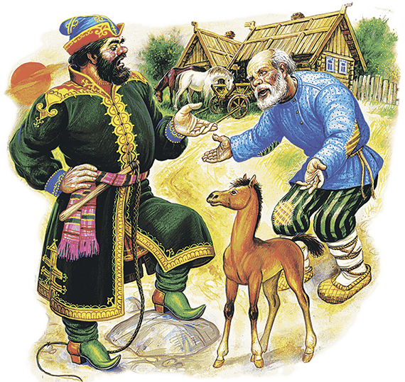 — Вот диво! Да.тут отгадывать-то нечего. Нет ничего на свете жирнее моего рябого борова, слаще липового мёда наших пчёл, а быстрее нашего гнедого жеребца никто бежать не может: ведь он как помчится, так и ветер его не догонит!