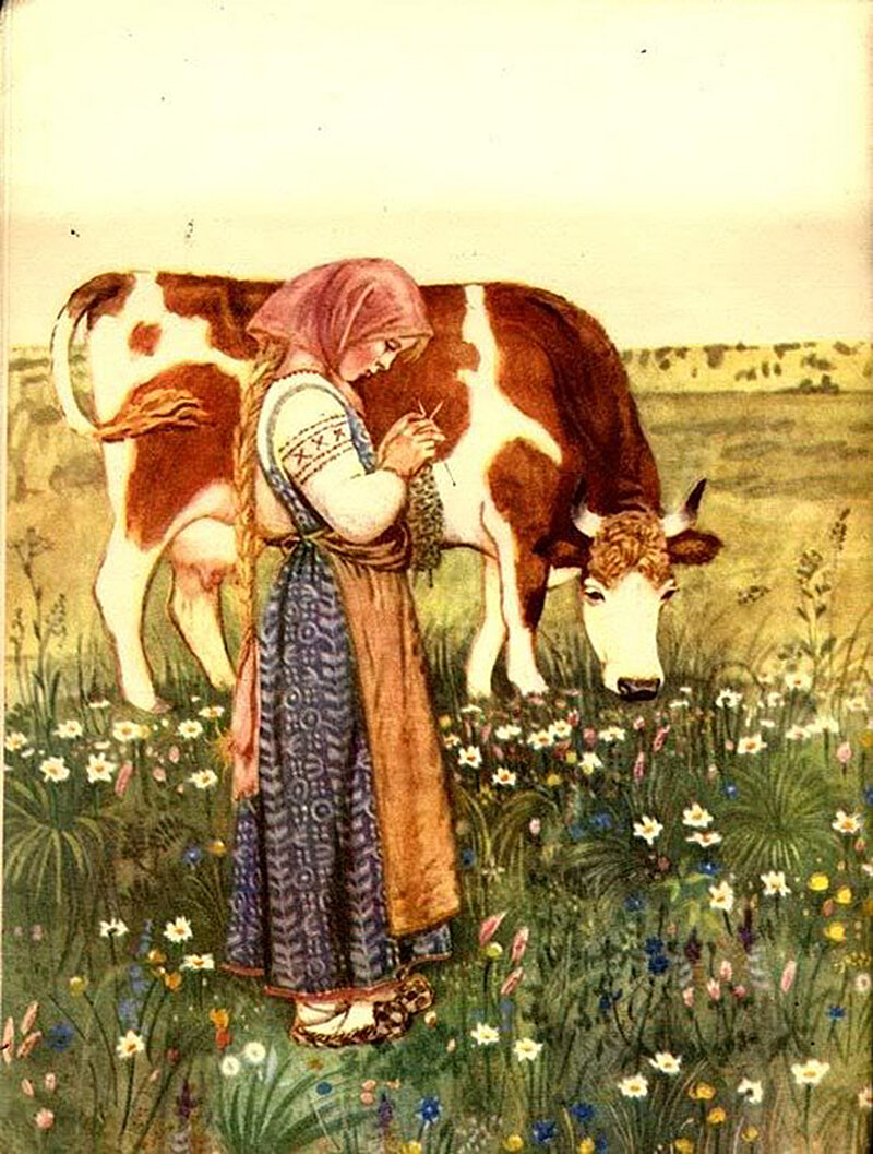 Подросла девочка, исполнилось ей семь лет, стала сама корову пасти.
