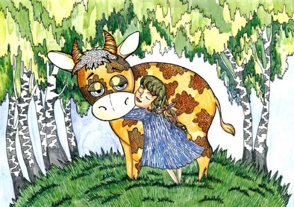 Послушался муж жену, и стали они тёлочку выхаживать.