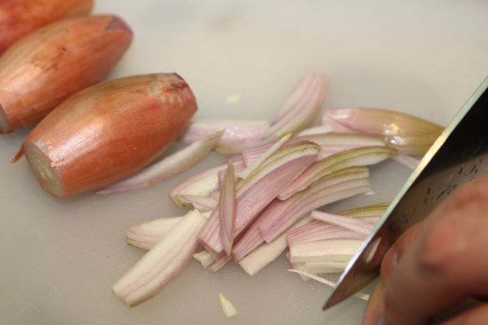 Вместо шалота можно взять самый простой репчатый лук, но его придется обязательно заранее замариновать в уксусе белого вина или яблочном, подойдет и