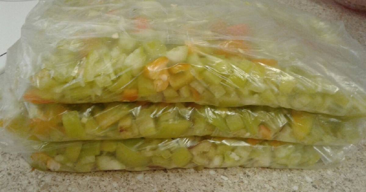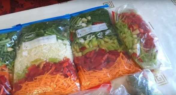 - Разложите нарезанные овощи по пакетам и уберите в морозильную камеру. Останется только не забыть разморозить заготовку перед приготовлением борща.