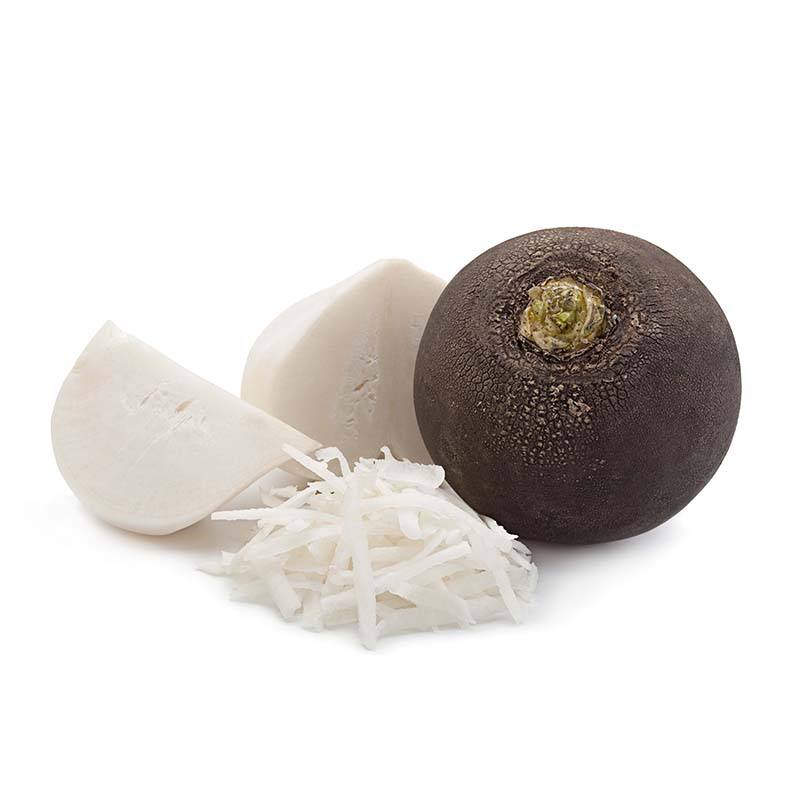 Из — за высокого содержания углеводов 11 г / 100 г , черная редька имеет достаточное количество калорий для овощей: 58 ккал / 100 г . Его едят сырым, очищенным от кожуры и нарезанным соломкой или натертым.