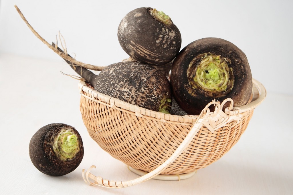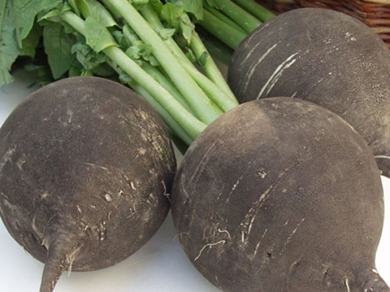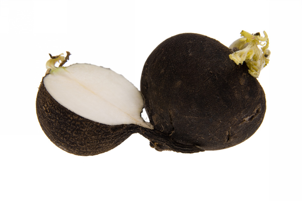 ‘Черный испанский’ или ‘Черный испанский круглый’ встречаются как в круглой, так и в удлиненной форме, и иногда их называют просто черной редькой (Raphanus sativus L.