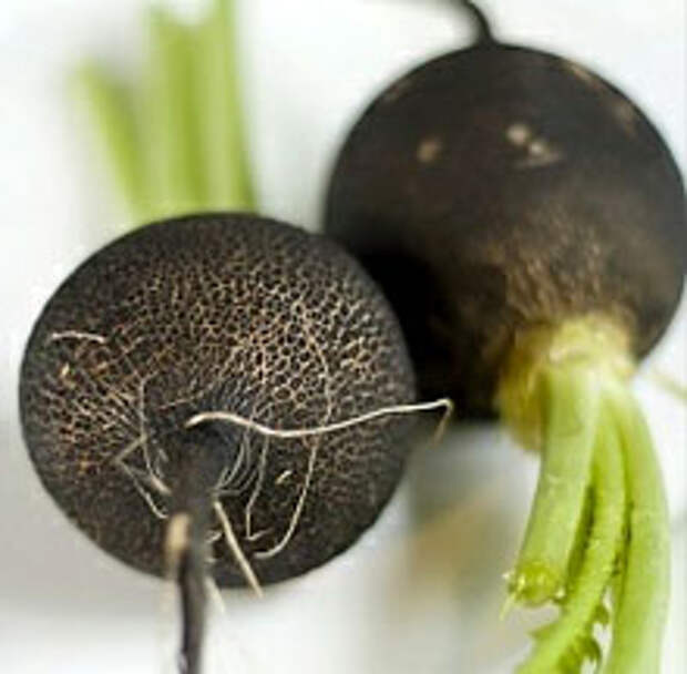 Эта чернокожая красавица — черная испанская редька (Raphanus sativus L. var. niger) , зимняя редька, которая вырастает намного длиннее (со временем) и крупнее (по размеру), чем весенняя редька, с которой вы, возможно, более знакомы (например, миниатюрный вариант французского завтрака или маленькие красные глобусы, которые вы видите в продуктовом магазине).