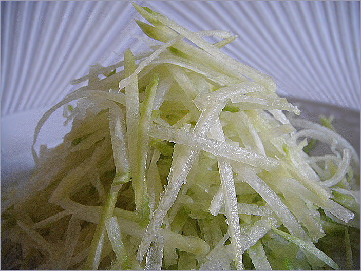 - 1 Яблоко Фуджи, очищенное и нарезанное соломкой