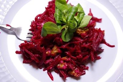 Салат из редьки и свеклы с гранатовым сокомОдну свеклу и одну редьку натереть на крупной терке. Добавить четверть стакана гранатового сока, заправить медом(или сахаром) и для аромата можно добавить тмин или семена укропа.