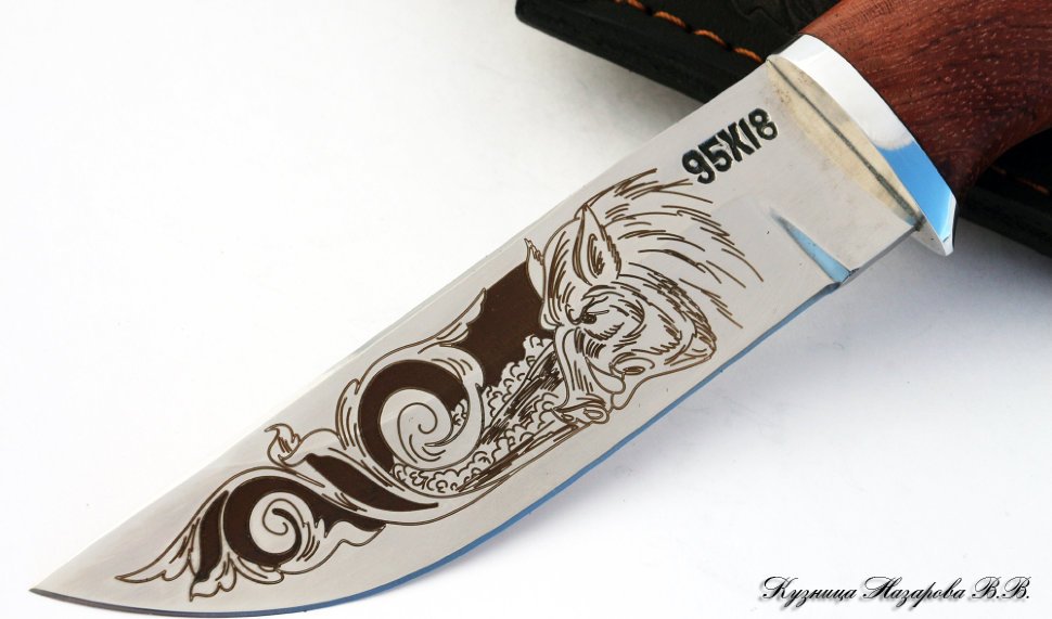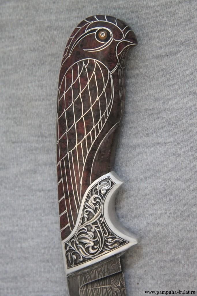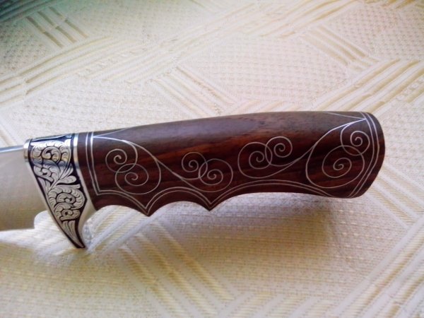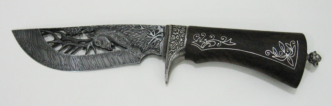 Мне, тульскому резчику по дереву выпала удача не только украсить рукоять ножа, но и познакомить Вас с моей работой. На страницах этого сайта я покажу, мастер-класс по отделке рукоятки охотничьего ножа из дамасской стали. Ручка ножа сделана из древесины кавказского ореха, который отличается крепостью и специфической текстурой, дающий после обработки красивую расцветку. Размер ручки имеет небольшой допуск для воплощения моего замысла.