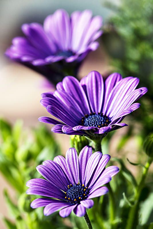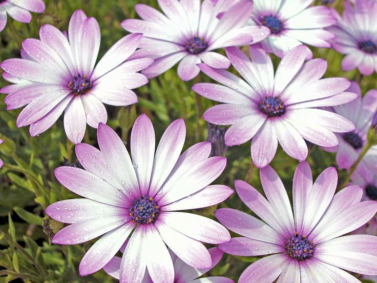 Такой оттенок чаще всего принадлежит остеоспермумам. Это многолетнее растение чаще используются для облагораживания клумб и других озеленённых территорий. Хотя родом он из теплых регионов Аравии и Южной Африки, но прекрасно адаптировался к умеренным широтам и радует нас своими аккуратными и притягательным видом.