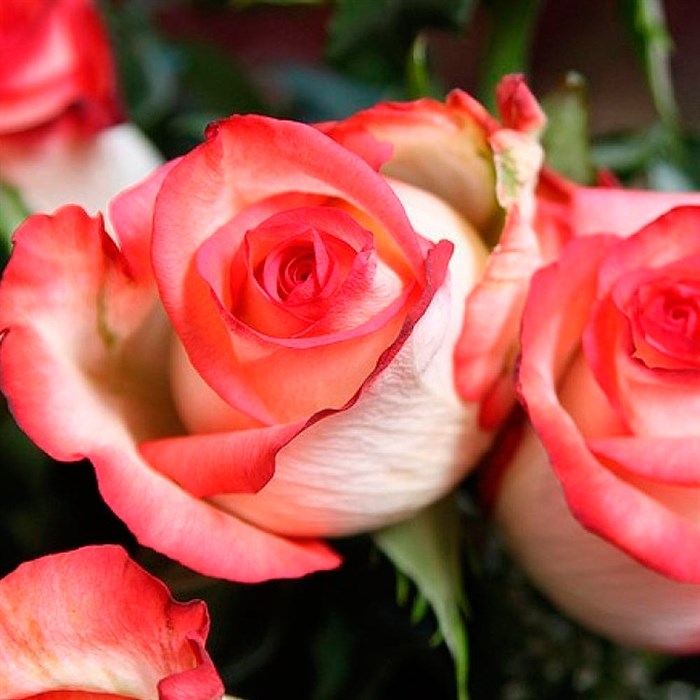 «Румяной» эту розу назвали из-за необыкновенной цветовой гаммы, в которой выдержаны ее цветки. Образующиеся на растении высокие бокаловидные бутоны окрашены в розовые тона, однако по мере распускания они остаются таковыми лишь по краям, с боков же приобретают молочно-белый оттенок по причине выгорания на солнце. Из-за этого растение выглядит очень эффектно, будто стройная красавица с зардевшимся личиком. В довершение всего нежные цветки источают приятный аромат, правда, едва ощутимый. Бутоны развиваются по одному на каждом стебле. Но бывает, что они образуются группами, по три штуки на побеге. Размеры цветка в диаметре составляют 8-12 см. Он никогда не раскрывается до конца, не показывает серединку.