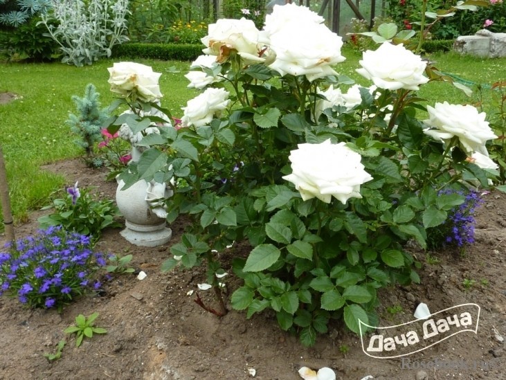 Нежные розы Ла Палома хорошо сочетаются и с пионами, и с ирисами, и различными типами роз других цветовых сочетаний, создавая совершенно особое настроение в саду.