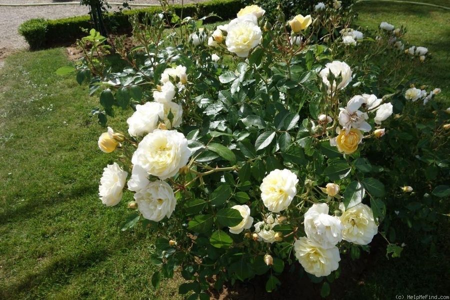 Цветки переливающиеся, чисто-белые, в центре кремово-желтоватые, махровые (30-35 лепестков), многочисленные, в соцветиях до 30 штук, устойчивы к непогоде. Аромат умеренный. Листья тёмно-зелёные, глянцевые, кожистые. Кусты густые, хорошо разветвлённые, прямые. Цветение обильное. Сорт устойчив к болезням, зимостойкий.