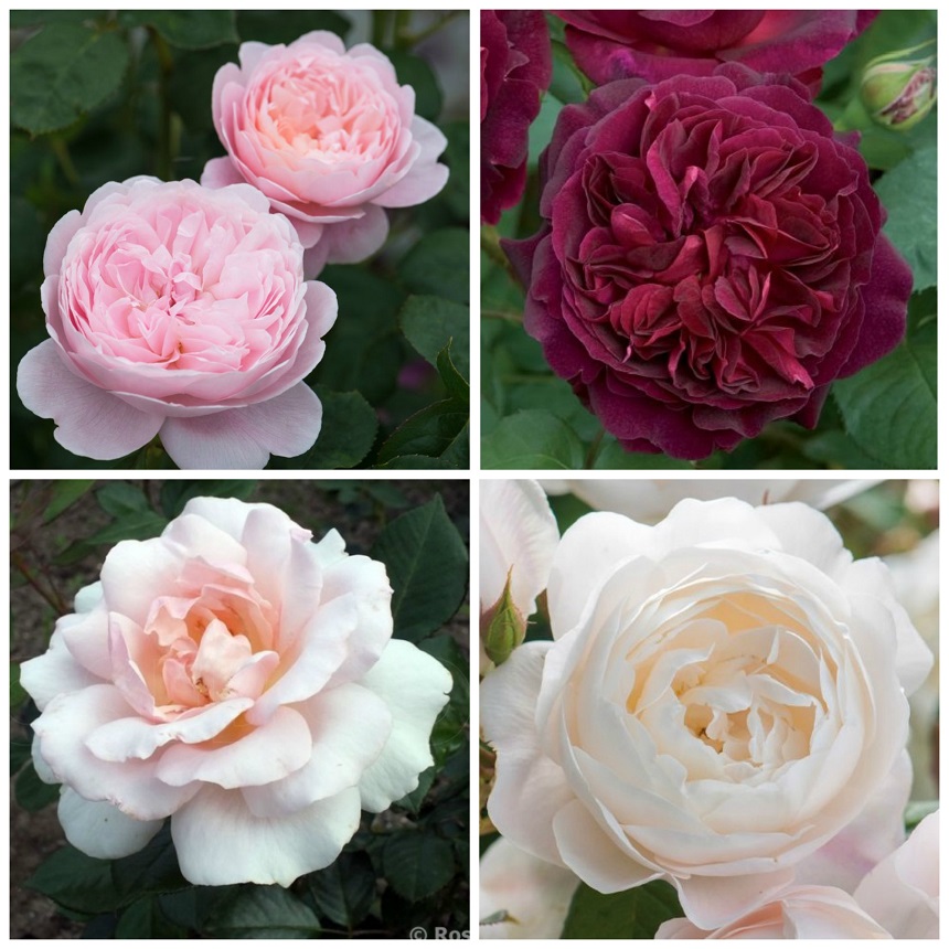 Большое внимание следует обратить и на два неповторимых сорта роз Дэвида Остина (каталог отображает их как «лучшие из лучших»). Особенность в том, что распускаются они очень медленно и в полу-розпуске напоминают чайно-гибридные розы. Характерной особенностью является жесткость лепестков и строгость форм. Соцветья крупноцветковые. Имеют устойчивость к неблагоприятным погодным условиям и множеству болезней.