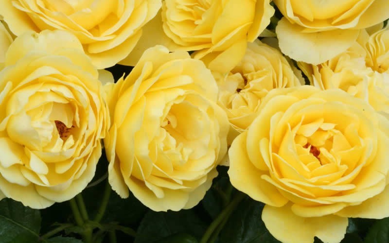 Фризия. На побегах плотных, компактных кустов высотой в 70 см образуются чрезвычайно ароматные махровые цветы ярко-желтого цвета. Их особенность в том, что они не выгорают даже на солнце, что для роз чрезвычайно ценно. Этот сорт зацветает одним из первых, и цветет до самых заморозков.