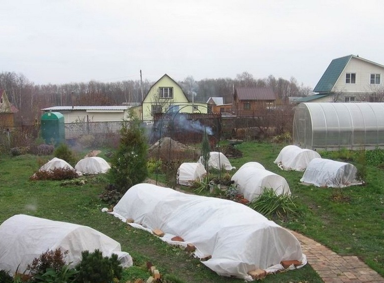 Их концы закрепляются в земле, а материал складывается вдвое и накрывается. Края надежно фиксируются тяжелыми предметами.