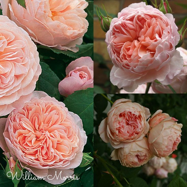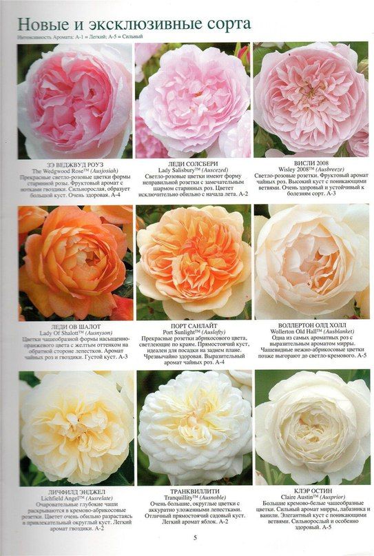 - Anne Boleyn (Анна Болейн). Растения высотой 90-110 см и шириной 80-100 см со свободно расположенными выгибающимися побегами, покрытыми нежно-зеленой глянцевой листвой. Махровые розеточные цветки (до 10 см в диаметре) имеют нежно-розовый оттенок с более темной обратной стороной лепестков. Собираясь в большие соцветия (до 10 шт.), они появляются регулярно вплоть до поздней осени.
