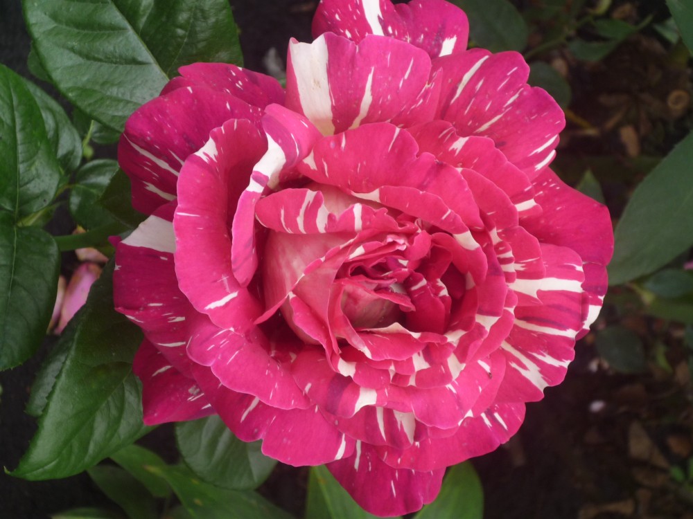 Глубокая роза, белая с пятнами.Форма от средней до крупной. 1974 — Куруме, Япония