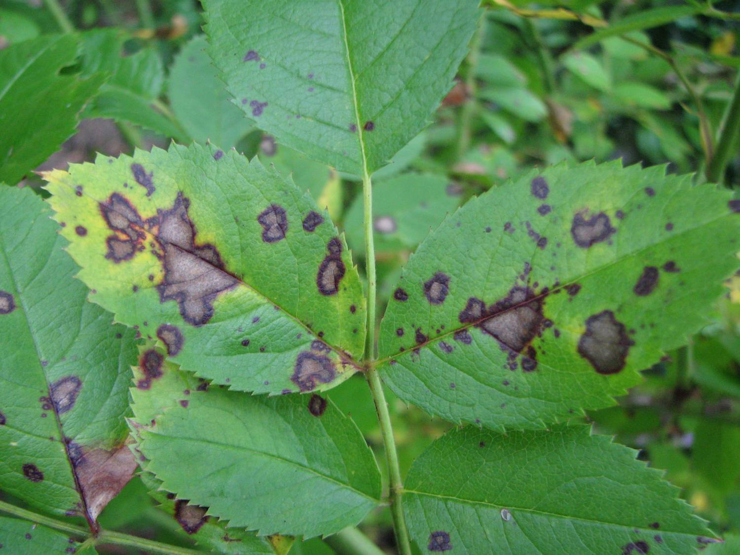 На любом садово-огородном участке, в почве, живут грибки. Есть среди них и множество болезнетворных. Возбудителем чёрной пятнистости является Marssonina rosae (марссонина). Болезнь начинает проявляться, когда для этого грибка складываются благоприятные условия: повышенная влажность и летнее тепло.