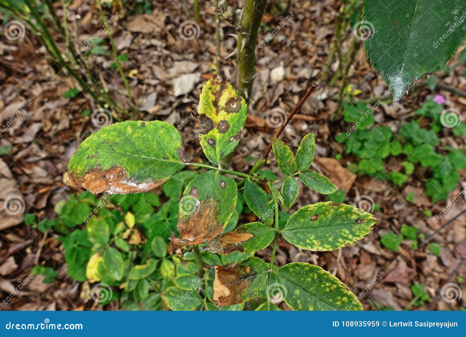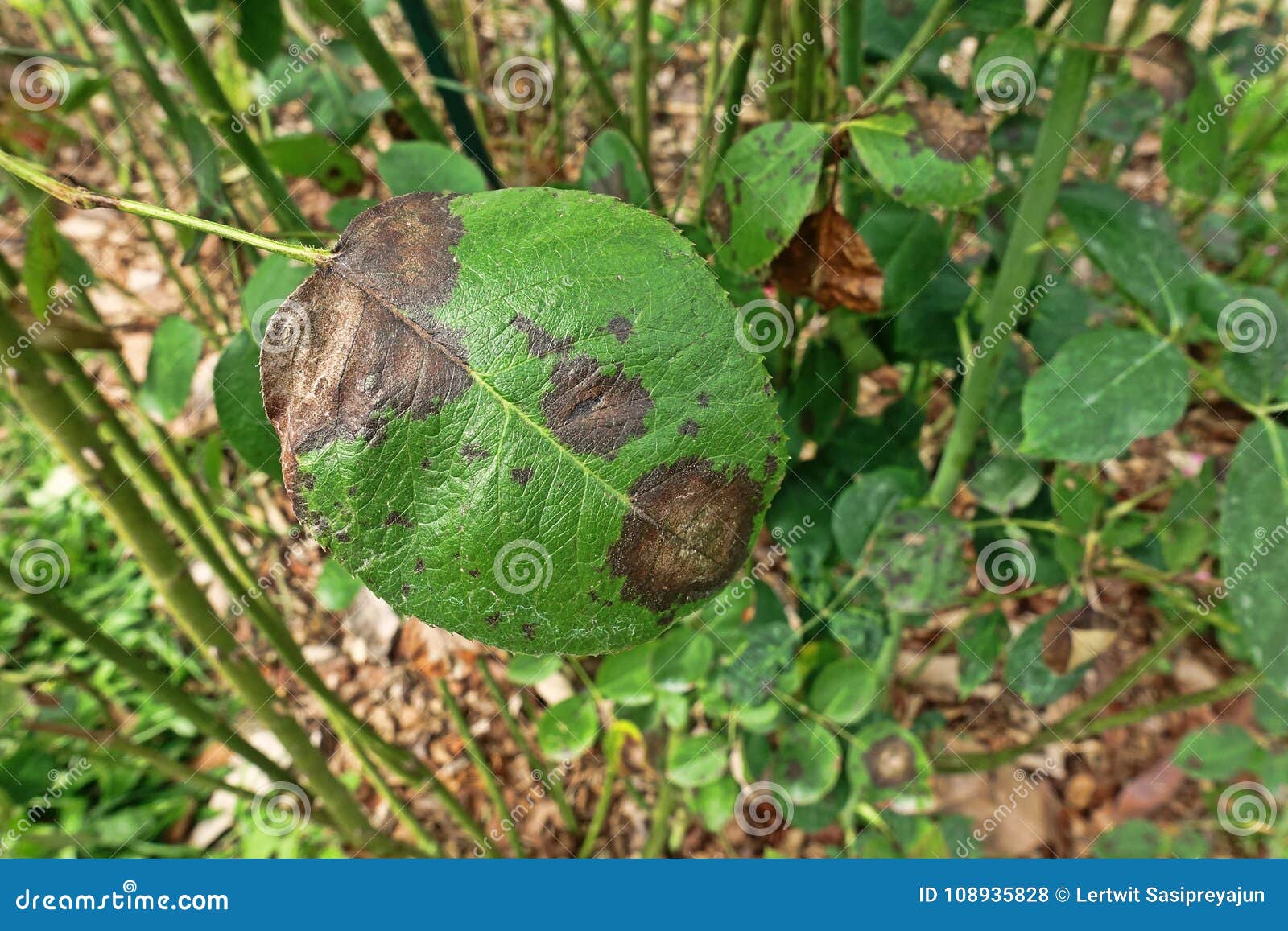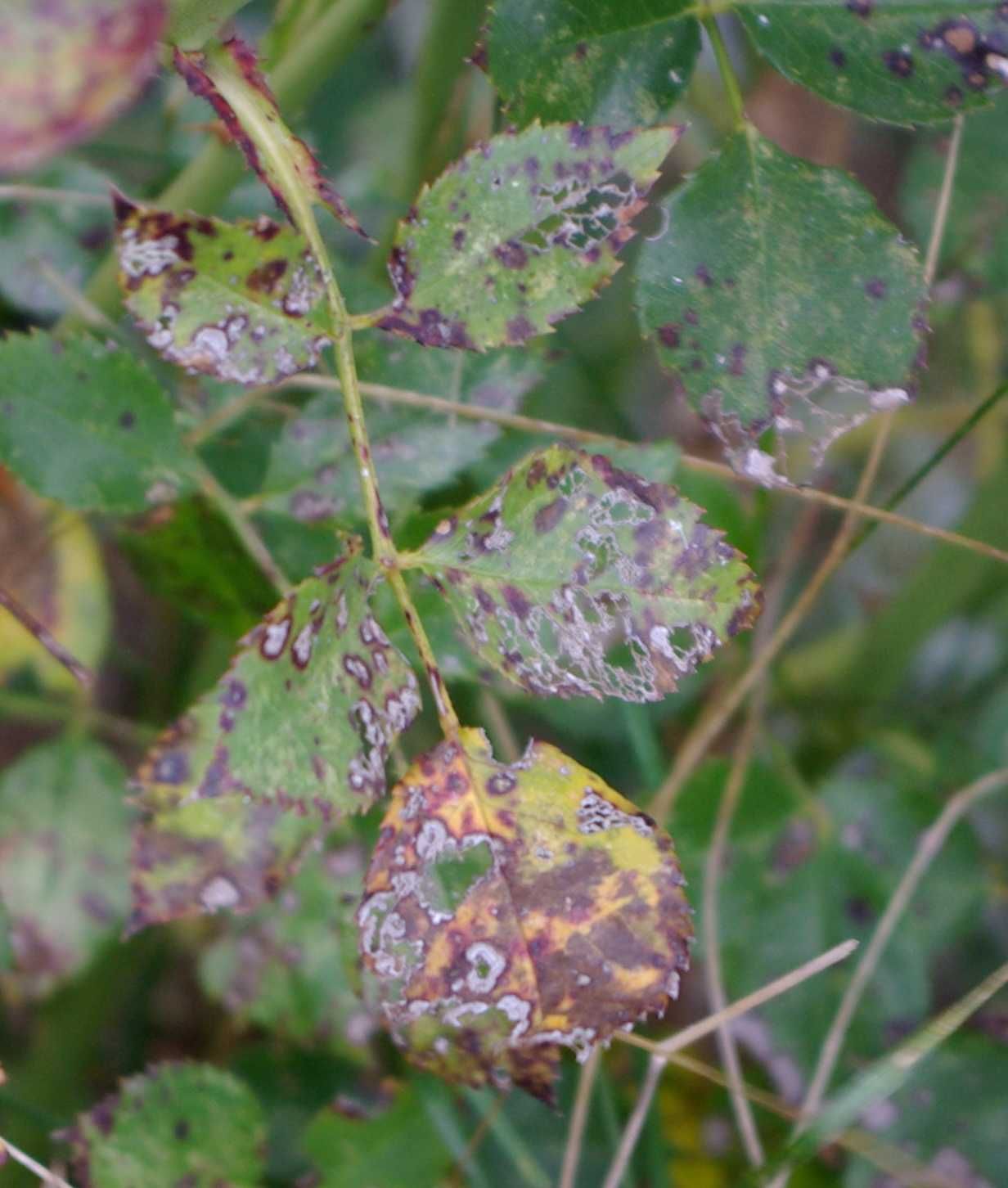 - Заболевание вызывается грибковым возбудителем Diplocarpon rosae .
