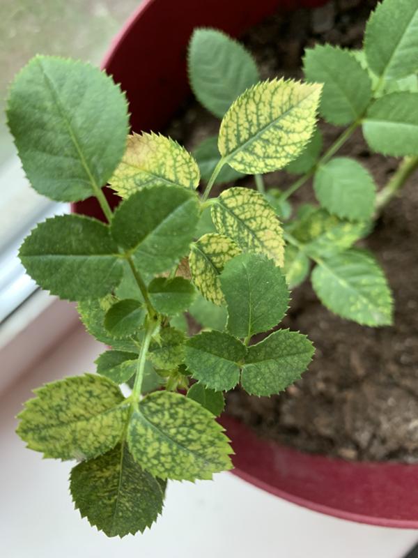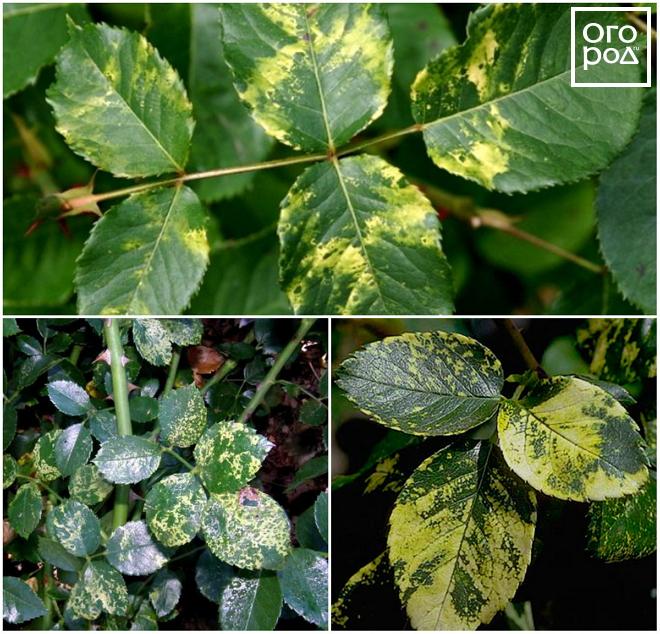 Вирусы могут появляться на розах, обычно на кустах, проданных десять или более лет назад. Чаще всего они появляются на новой весенней листве, стрессовых растениях или в конце вегетационного периода. По крайней мере, два разных вида вирусов могут заразить розы.