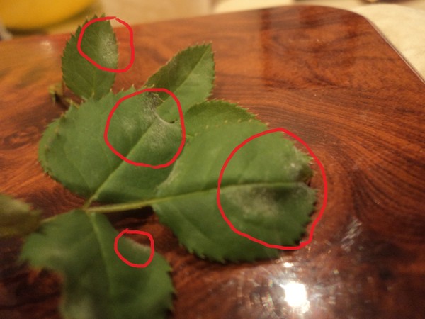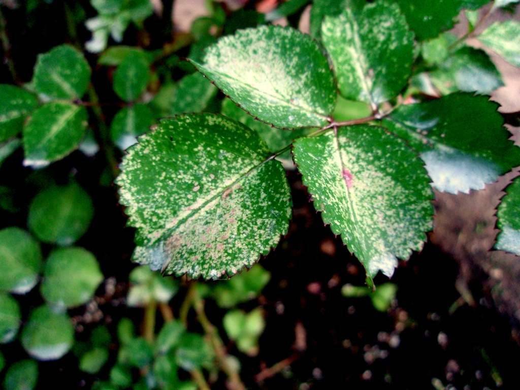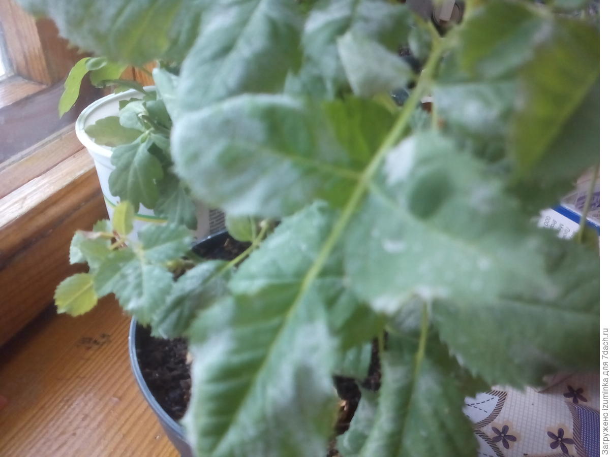 Распознать ее легко по белому налету. Растение кажется обсыпанным мукой. Налет появляется сначала на нижних листьях, затем постепенно поднимается к верхушке растения. В запущенной стадии на пораженных листьях образуются бурые точки, они скручиваются и засыхают. Роза перестает цвести.